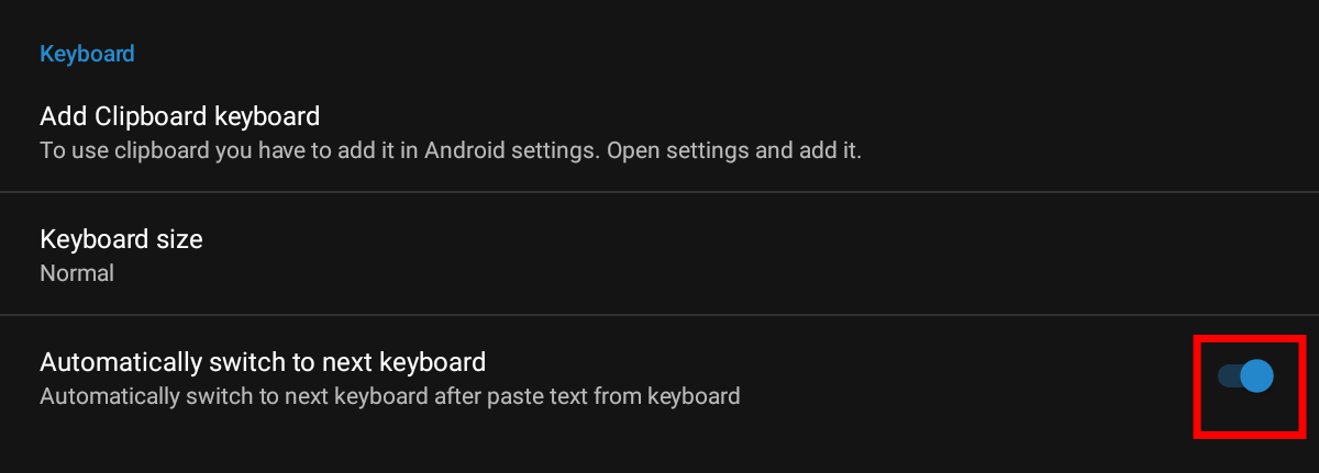 キーボードを使う時は地球儀アイコンを長押し、メニューからKeyboard Clipboardを選びます。
