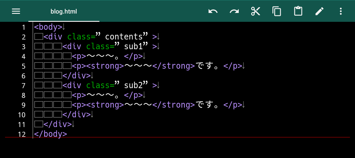 画面右上の</>をタップするとソースコードを表示します(編集は出来ません)。