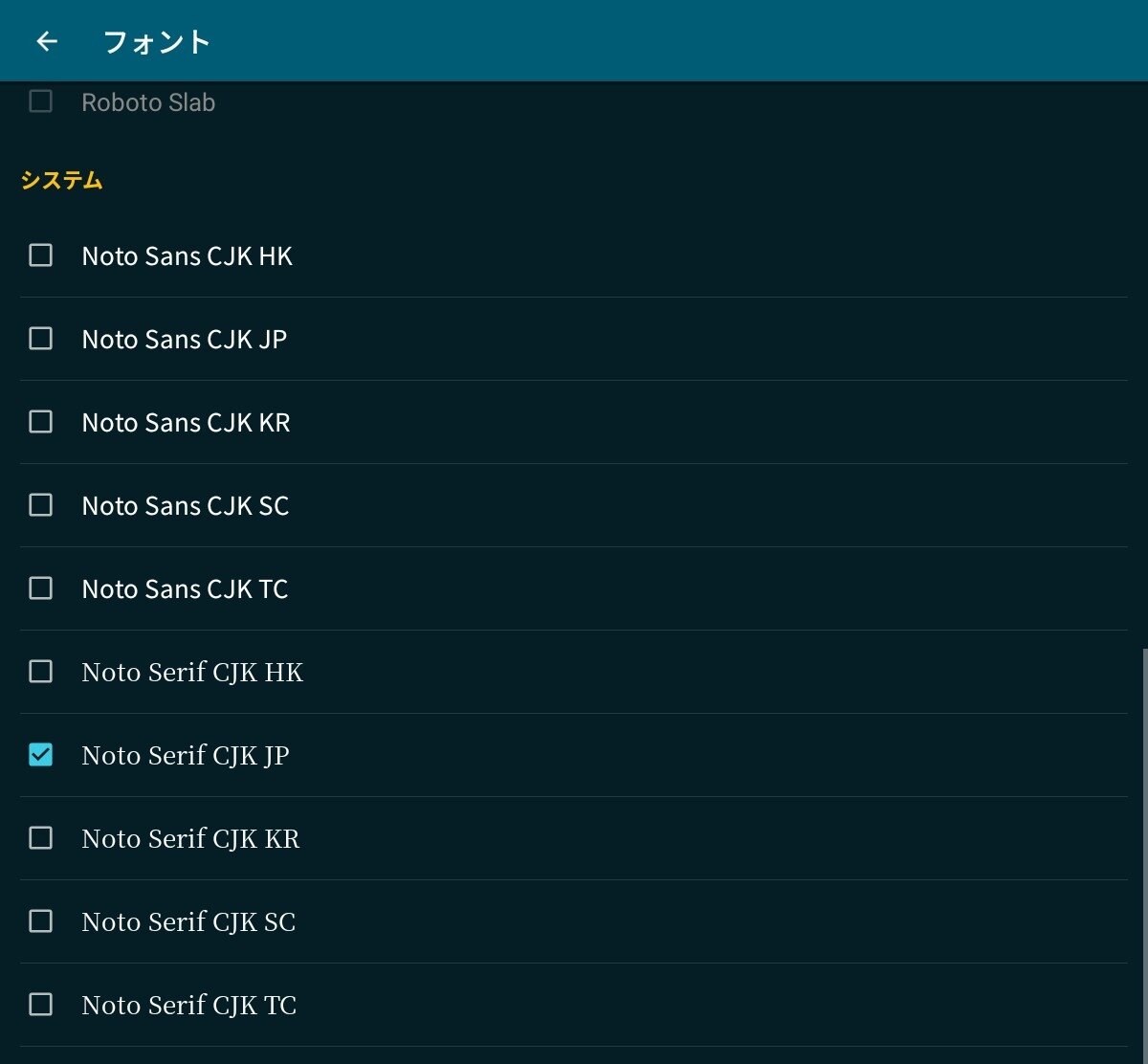 Noto Serif(明朝体)にしました。