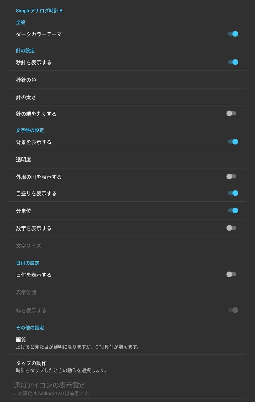 設置したウィジェットのタイプにより設定のどれかが使える様になります。