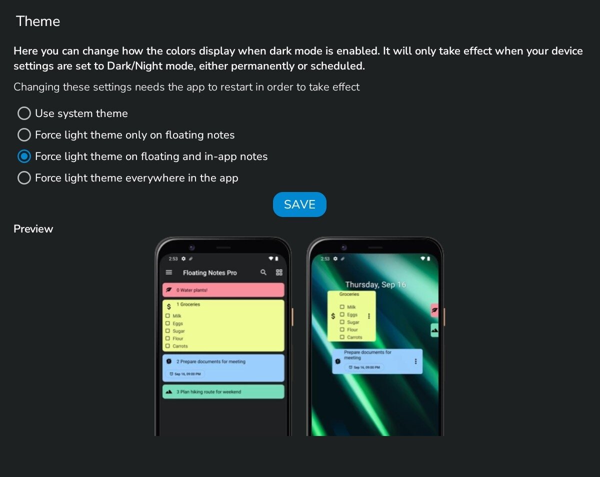 Overrides system dark theme (needs app restart)