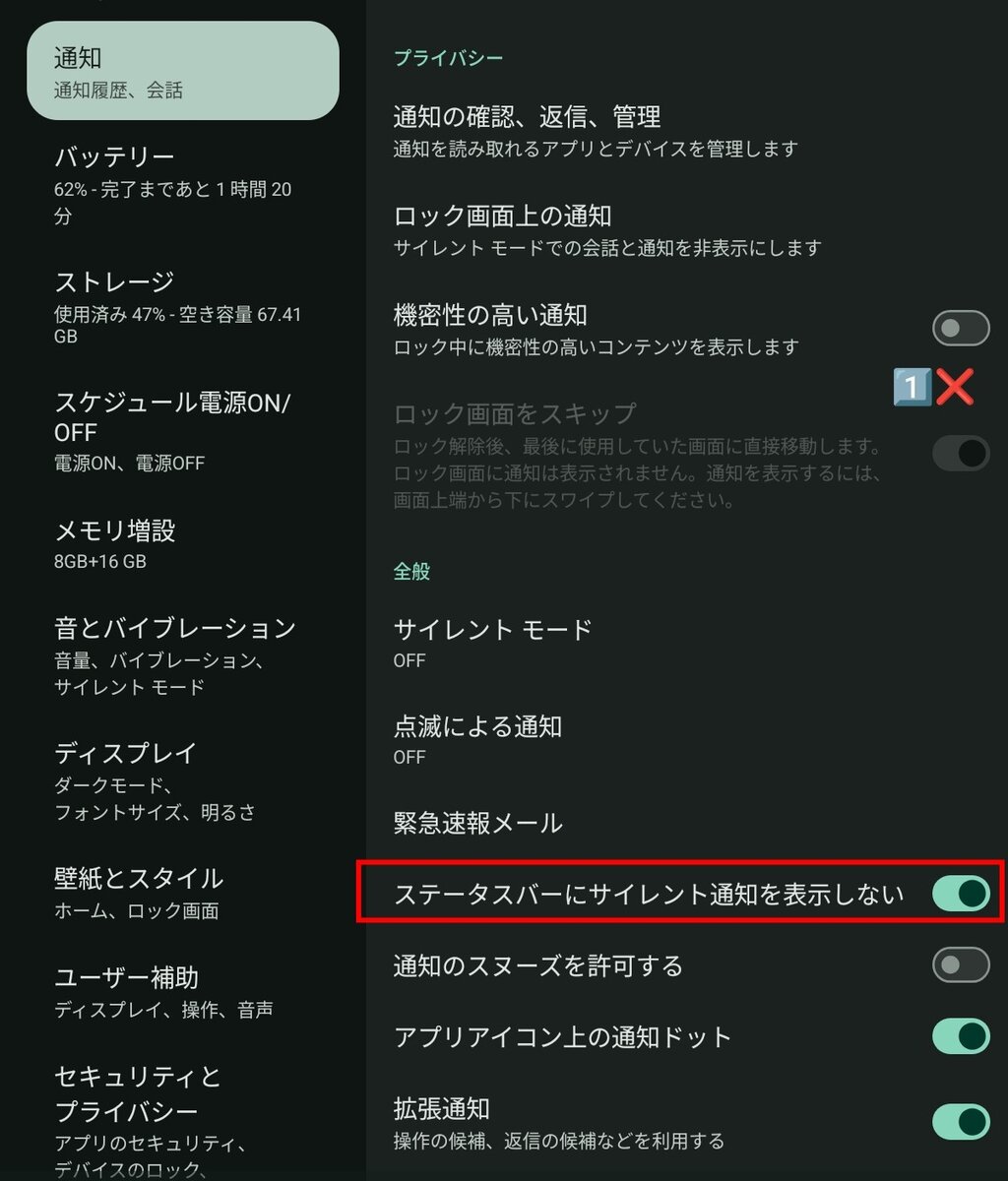 Hiddenにある通知をタップして再表示させる事が出来ます。
