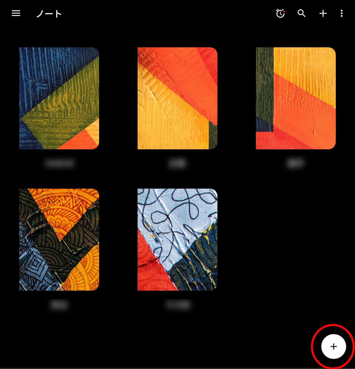 ノートは画面右上の+で追加します。