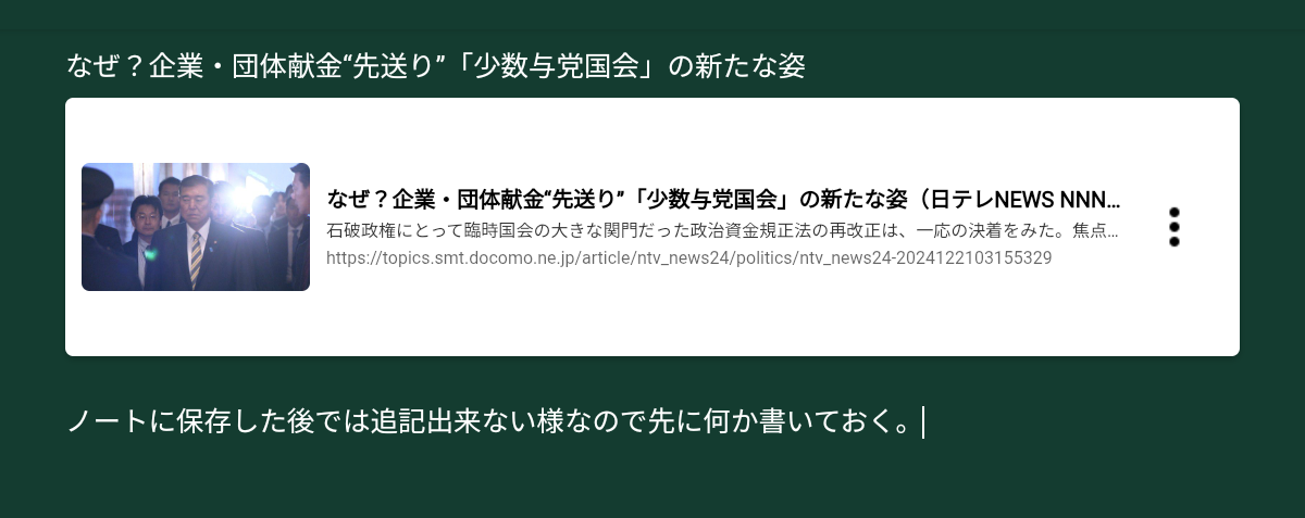 ※保存したカードのリンクの後には追記出来ないみたい。