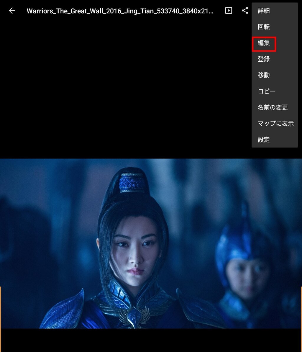 バッチ処理するためにはプリセットを作っておく必要があるそうなので「ギャラリー」をタップして画像を一枚選ぶ、
