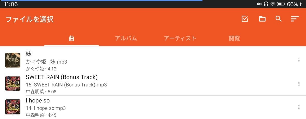 ストレージ内の曲が表示されるので変換したい曲を選びます。
