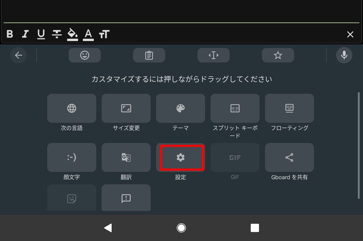 ツールバーは非表示にしてあり、「左下のあ」を長押しするとメニューが出ます。