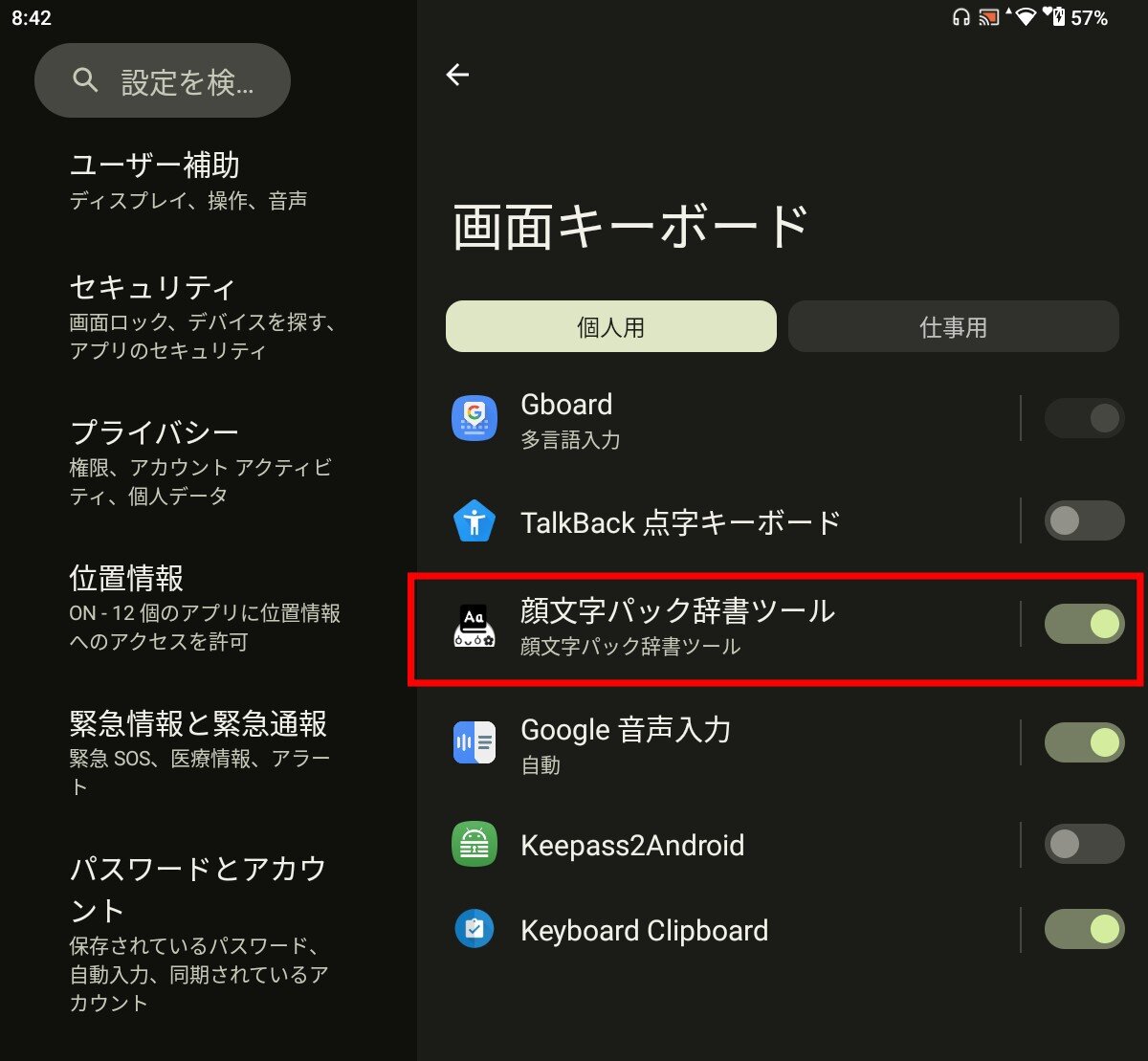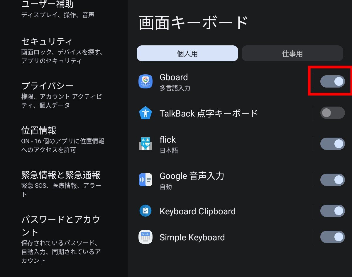 ここでキーボードを切り替えます。